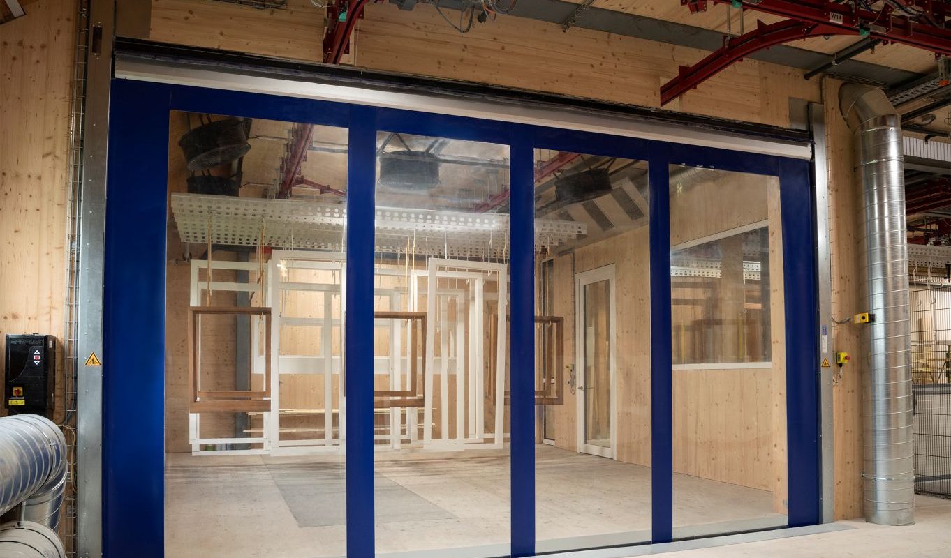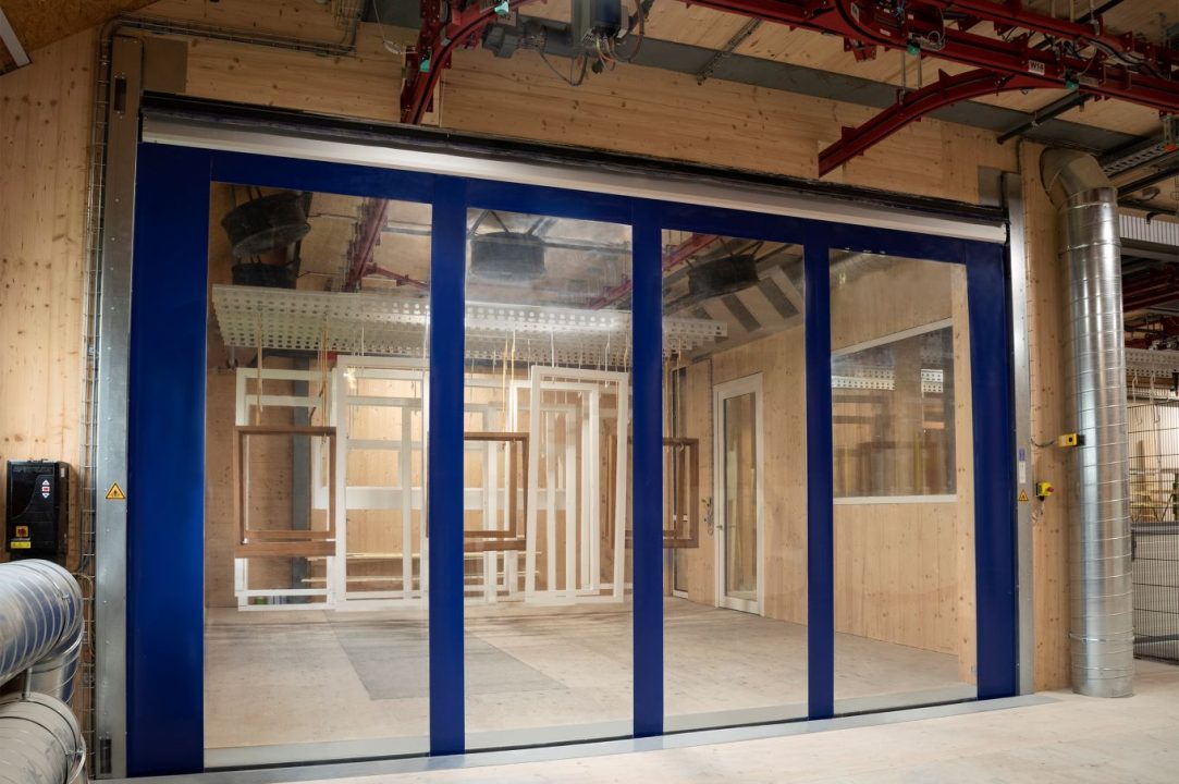 The door dimensions can be configured with widths ranging from 600 to 6,000 mm and heights ranging from 1,000 to 4,500 mm. The flexible door curtain is available in several designs and colours.